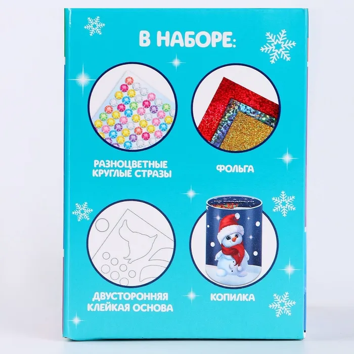 Копилка на новый год для декорирования стразами и фольгой «Снеговик с подарком», набор для творчества — Характеристики