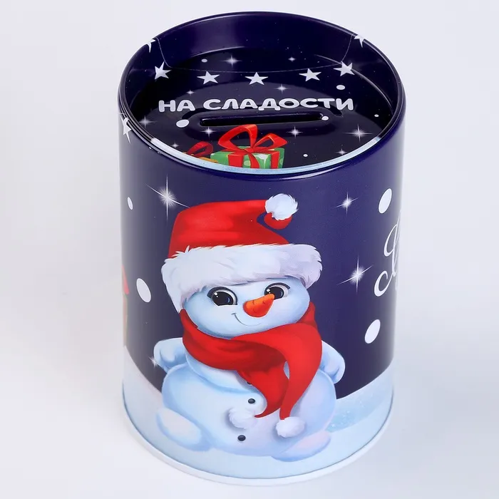 Копилка на новый год для декорирования стразами и фольгой «Снеговик с подарком», набор для творчества