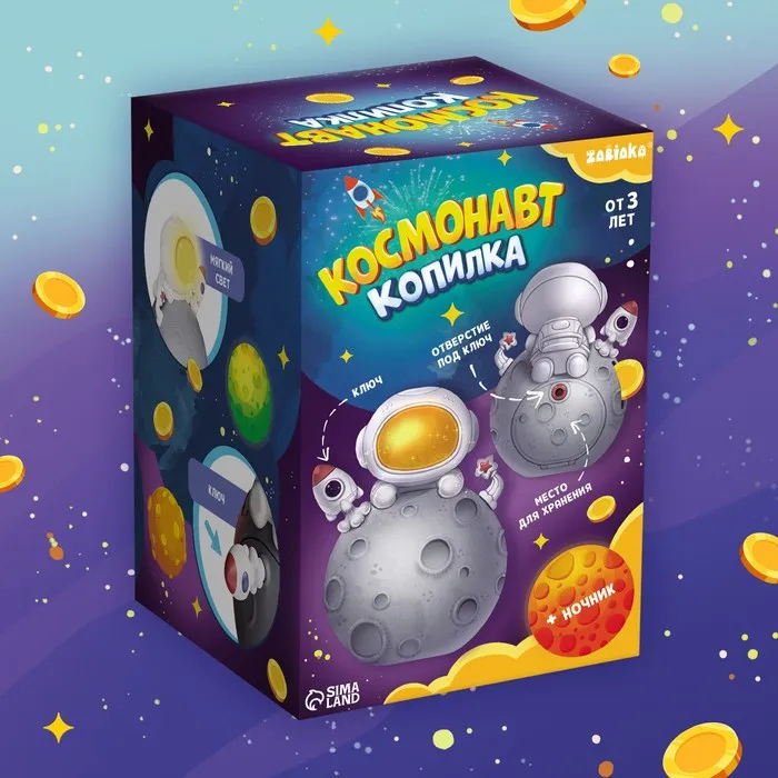 Этот космонавт не только помогает собирать деньги, но и развивает у ребёнка полезные навыки. Пользователь может с интересом наблюдать за накоплением монет, что формирует ответственность и учит копить с детства. Свет ночника создаёт расслабляющую обстановку, способствуя комфортному засыпанию.