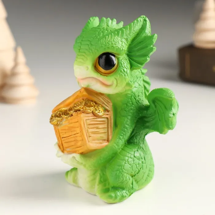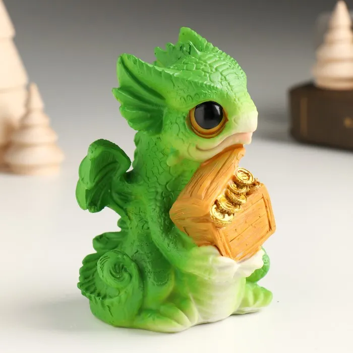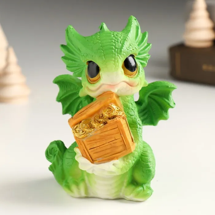 Копилка полистоун "Дракоша с большими глазами с бочкой/сундуком" МИКС 7х7х10,5 см — Характеристики