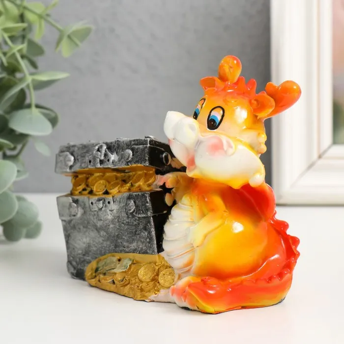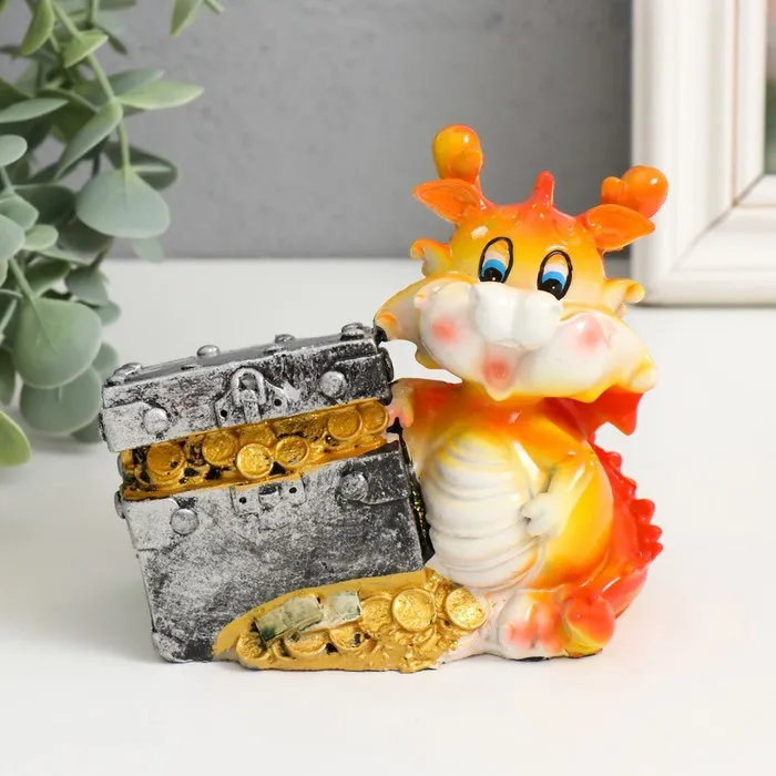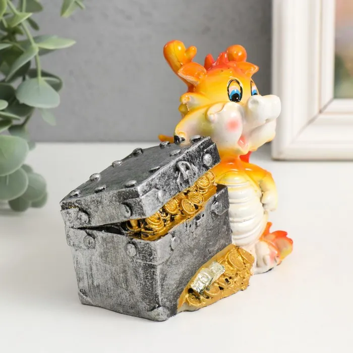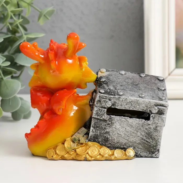 Копилка полистоун "Огненный дракоша с подарком/сундуком" МИКС 10,5х6х10 см — Характеристики