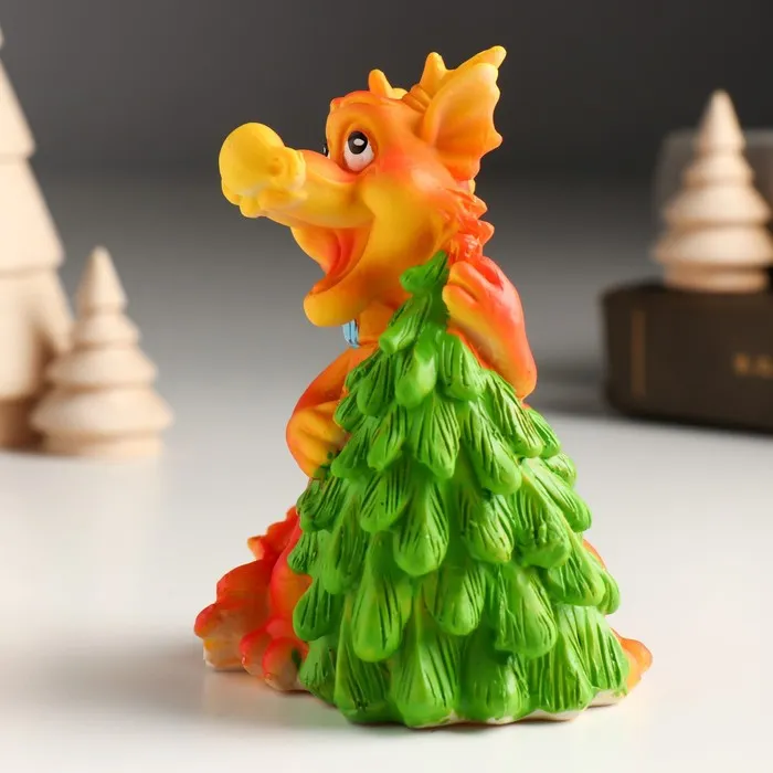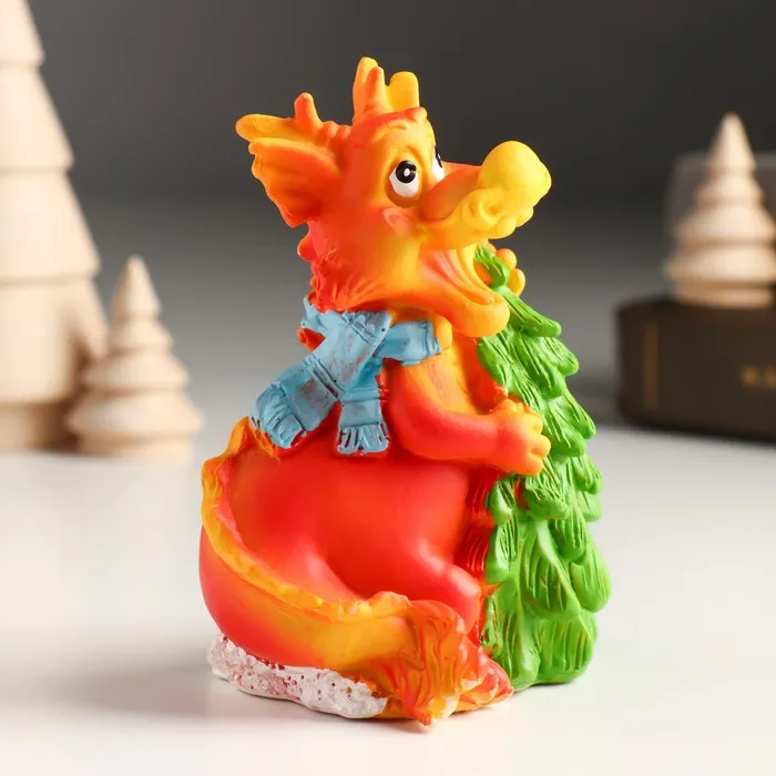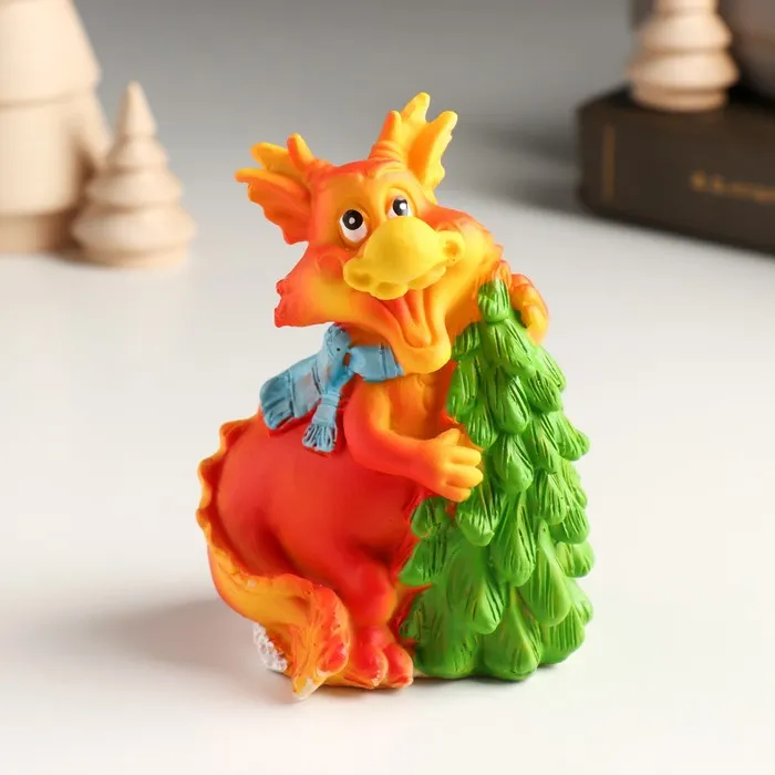 Копилка полистоун "Рыжий дракон в шарфике с ёлочкой/мороженым" МИКС 7,5х6х10 см — Характеристики
