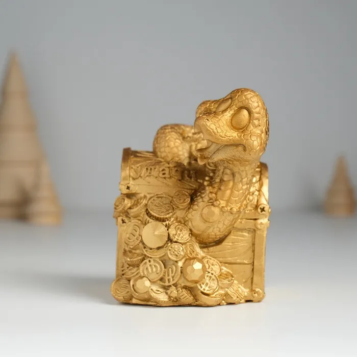 Копилка полистоун "Змея удачи с сундуком" 8х8х9,5 см