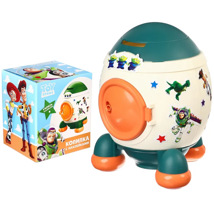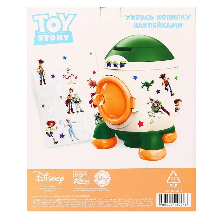 Копилка ракета с набором наклеек, 22.5 см × 18.5 см × 17.5 см, «Игрушки», История игрушек — Характеристики
