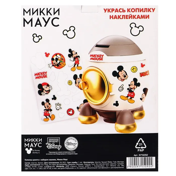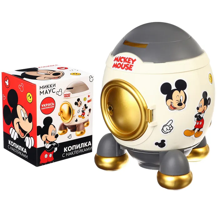Копилка ракета с набором наклеек, 22.5 см × 18.5 см × 17.5 см «Мышонок», Микки Маус — Характеристики