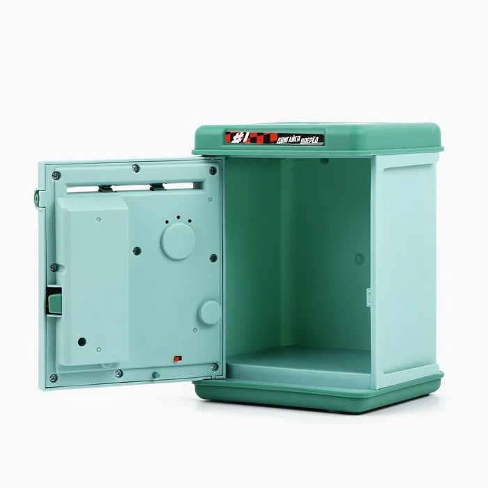 Электронная копилка-сейф для денег работает от батареек, принимает монеты и бумажные купюры. Уникальная музыкальная копилка - это копия сейфа с кодовым замком и электронным купюроприемником, как в банкомате, можно закидывать монеты или же вставлять купюры. Открыть может только человек, который знает пин-код сейфа. Имеет музыкальное сопровождение. По умолчанию в копилке установлен ПИН код: "0000". Для смены ПИН кода необходимо открыть дверцу вводом кода 0000, дождаться, пока светодиод погаснет, потом нажать и удерживать кнопку * 10 секунд, далее ввести новый 4-значный код и нажать #, после чего отпустить кнопку *. Нужно сразу проверить, открывается ли копилка-сейф с новым кодом.Если купюры плохо входят или электронный замок не работает, нужно поменять батарейки, желательно использовать батарейки высокого качества (3 батарейки типа АА).