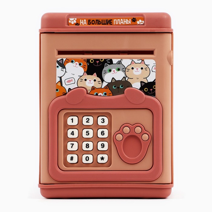 Копилка сейф «Котики» с отпечатком пальца, 15,5 х 11 х 10 см — Характеристики
