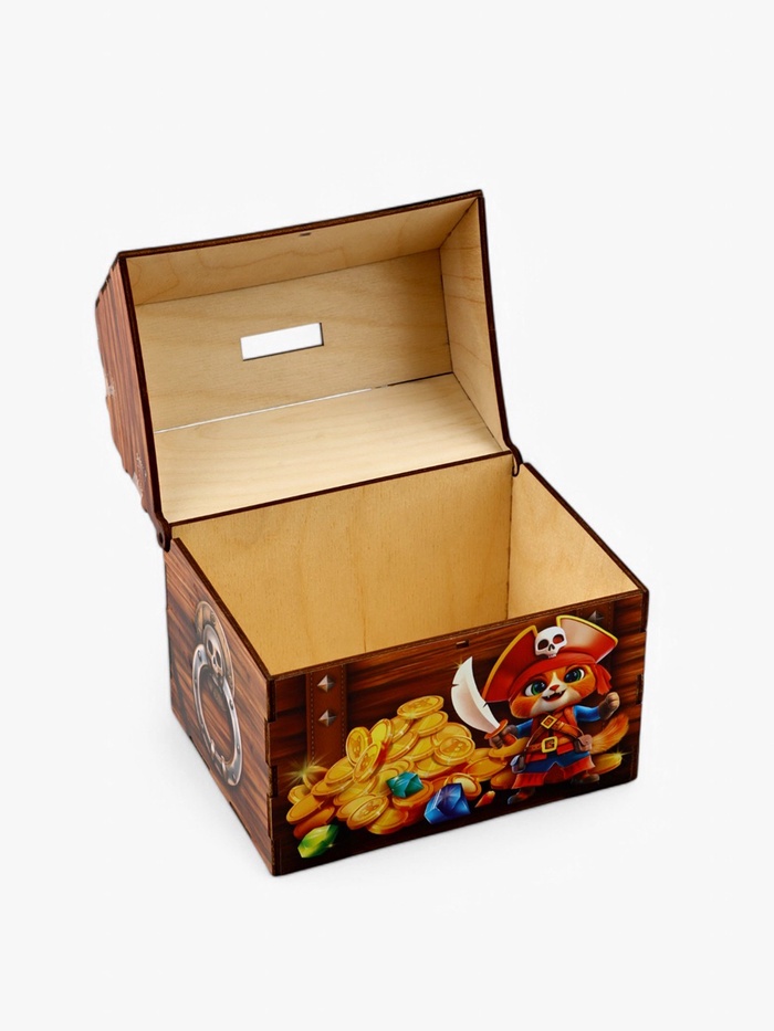 Выполнен в красивом и прочном дизайне, напоминающем старинные сундуки-клады. Идеальный выбор для тех, кто ценит стиль и безопасность своих сбережений!