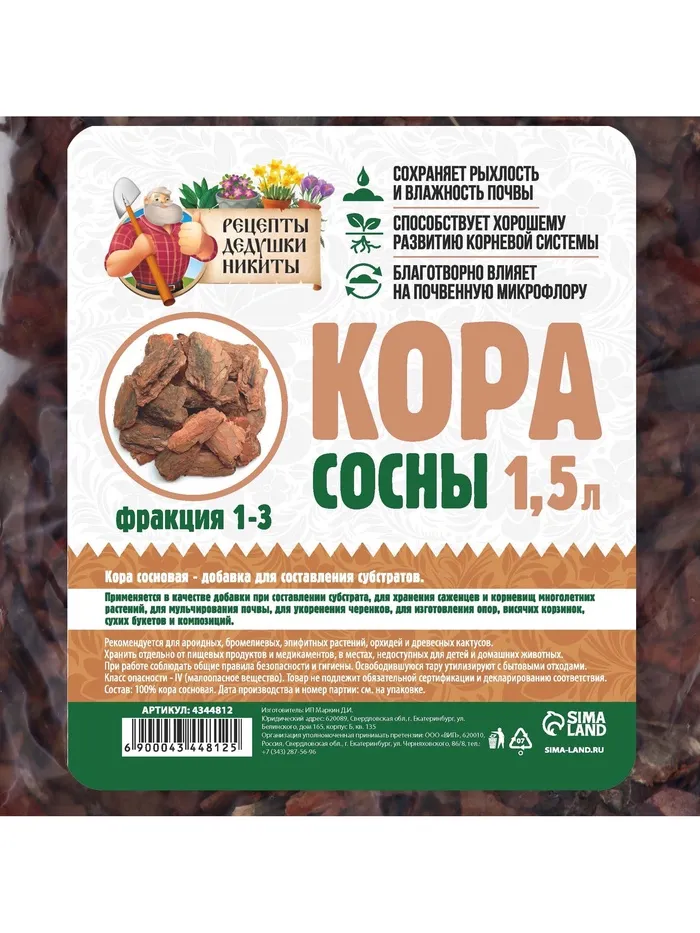 Кора сосны "Рецепты Дедушки Никиты" 1,5 л фр 1-3 — Характеристики