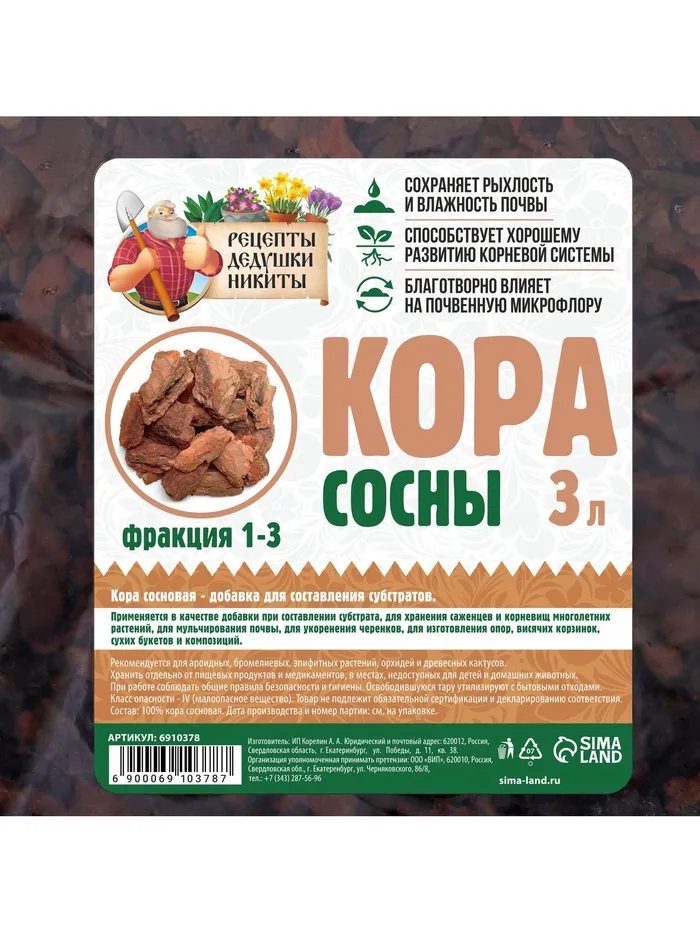 Кора сосны "Рецепты Дедушки Никиты", фр 1-3, 3 л — Характеристики
