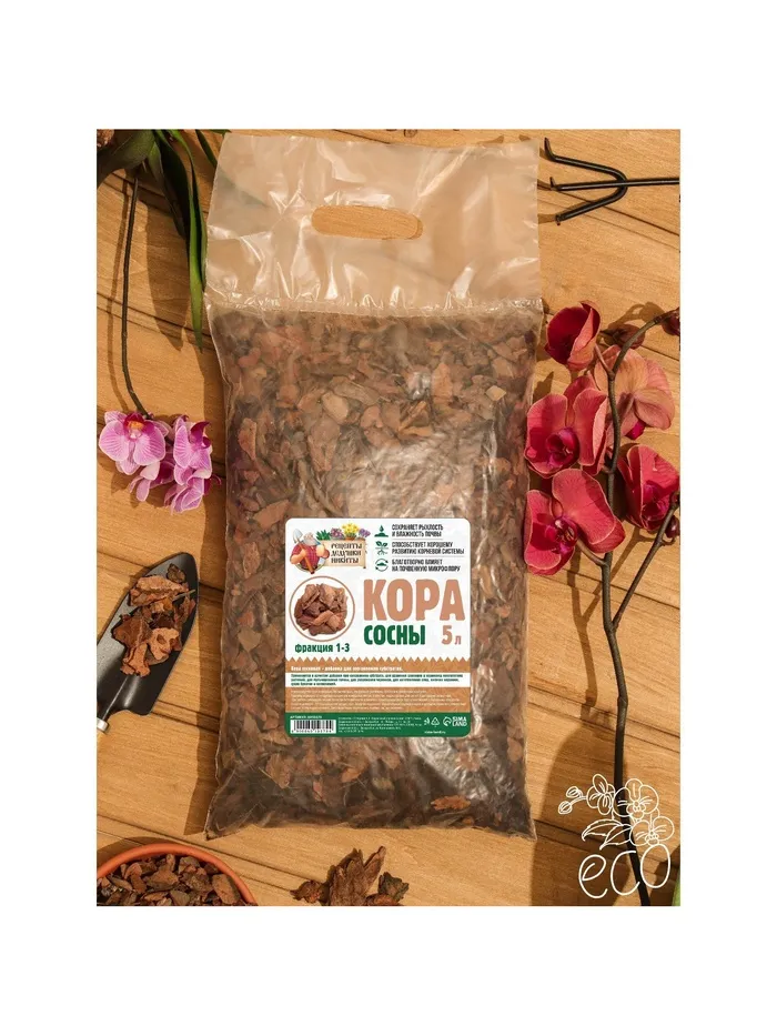 Кора сосны торговой марки - это натуральный субстрат, который используется для улучшения почвы и обеспечения здорового роста растений. Этот продукт производится из сосны высокого качества и предназначен для использования в садоводстве, огородничестве и ландшафтном дизайне.