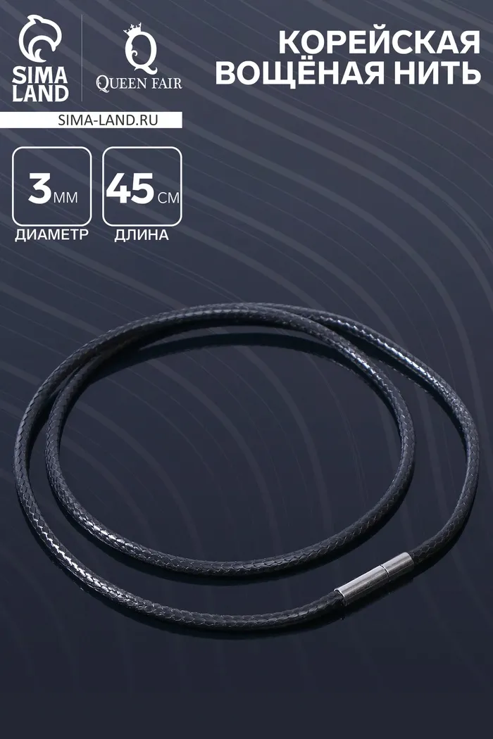 Корейская вощёная нить, 45 см, d=3 мм, чёрная — Характеристики
