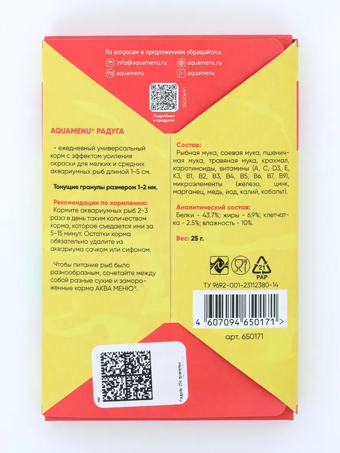 Корм Аква меню "Радуга" для рыб, 25 г — Характеристики
