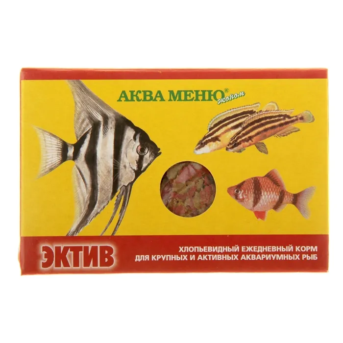 ЭКТИВ — предназначен для ежедневного кормления разнообразных видов цихлид из Центральной и Южной Америки (апистограммы, акары, цихлазомы, дискусы, скалярии и др.), активных рыб из Юго-Восточной Азии (макроподы, гурами, барбусы и др.) и различных сомов (синодонтисы, коридорасы и др.).