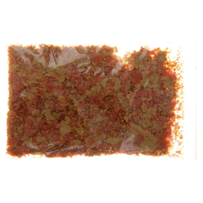 Состав: рыбная, пшеничная, соевая, травяная и водорослевая мука, крапива, микроэлементы, витамины А, В1, В2, В3, В4, В5, В6, В7, В8, В12, С, D3, E, K, H и специальные добавки. Связующие ингредиенты делают хлопьевидные корма более экономичными, ограничивая вымывание питательных веществ, аминокислот и витаминов во время пребывания в воде.