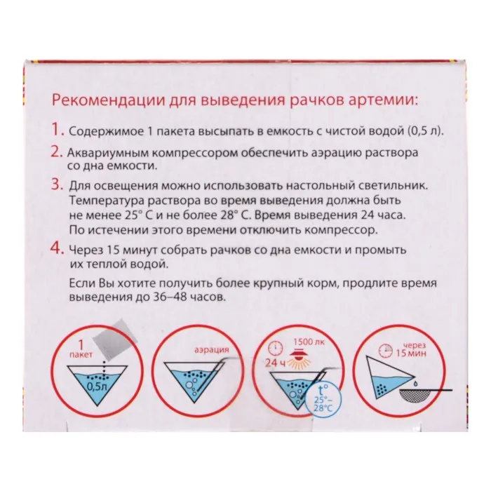 - Через 15 минут собрать рачков со дна емкости и промыть их теплой водой.