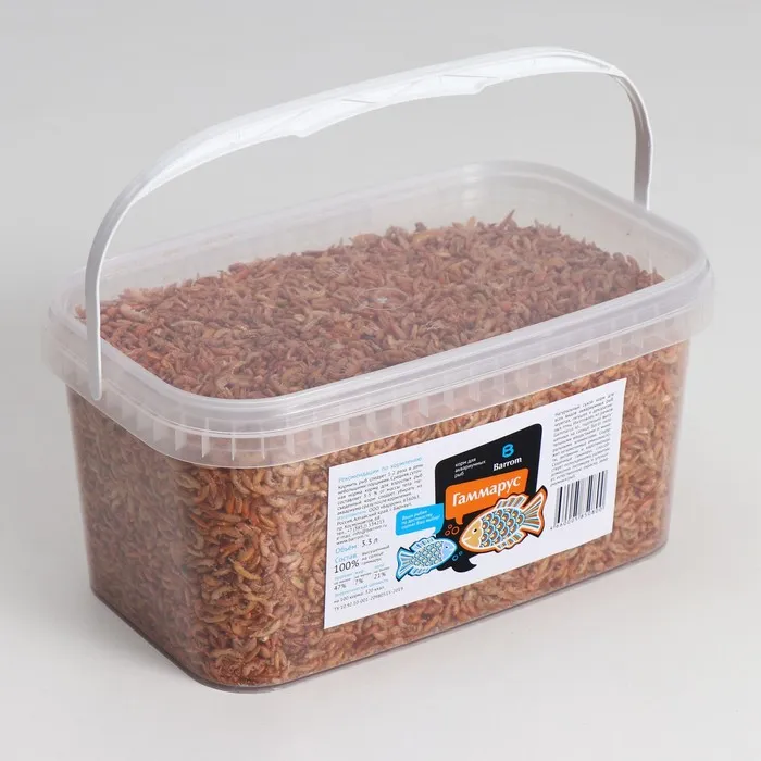 Сушеный гаммарус способствует полноценному развитию домашних питомцев и улучшает естественную окраску аквариумных рыб.
