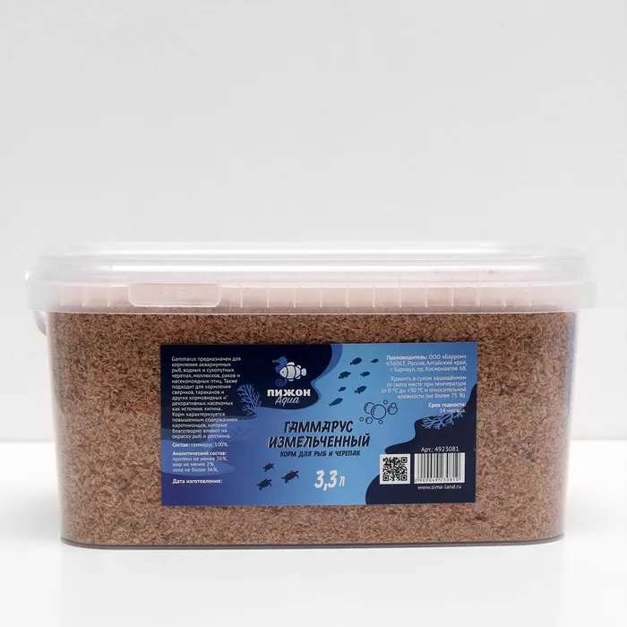 Корм для рыб и черепах "Пижон" гаммарус измельченный, 3,3 л — Характеристики
