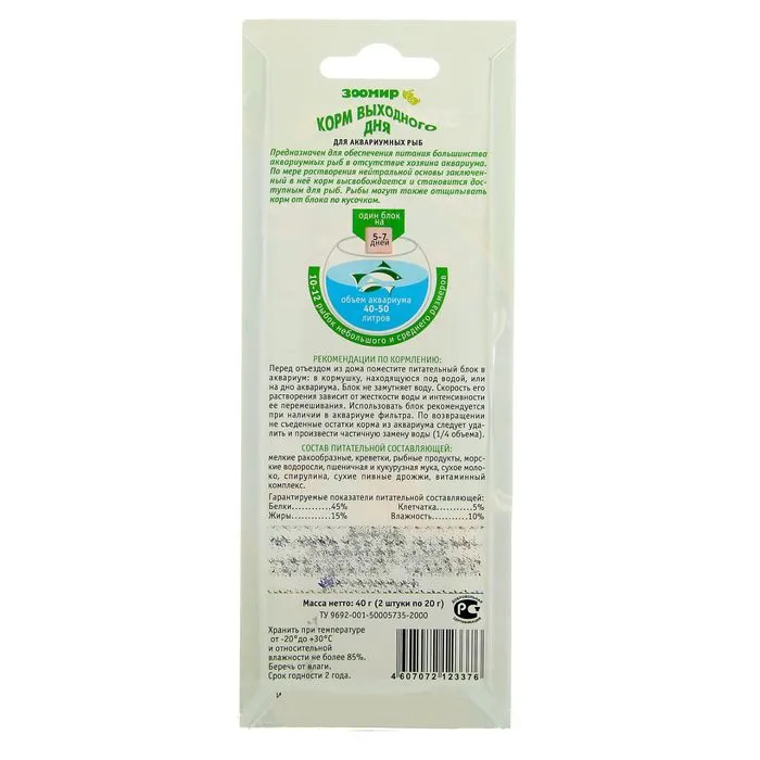 Корм для рыб ЗООМИР "корм выходного дня" 2 х 20 г — Характеристики