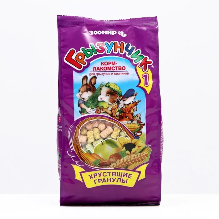 Корм-лакомство Зоомир Грызунчик - гранулированный корм для хомяков, морских свинок, мышей, крыс, шиншилл, дегу, песчанок, белок и других декоративных грызунов и кроликов.