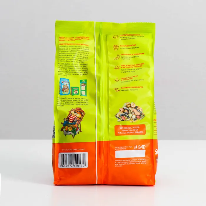 Содержит все самое необходимое для вашего зверька. Не требуется дополнительного подкармливания, за исключением зеленых и сочных кормов (фрукты, овощи, листья салата, одуванчика и т.п.).