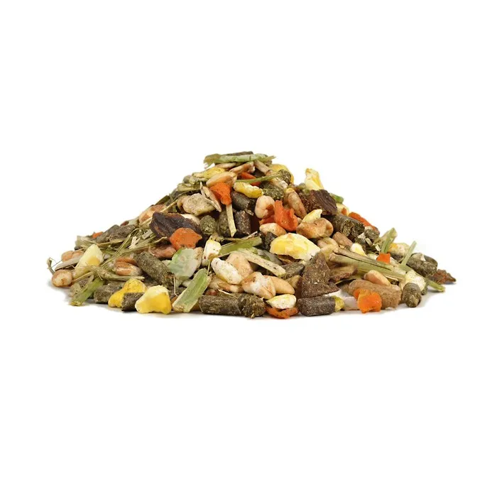 Состав: Травяные гранулы, плоды рожкового дерева(кэроб), пшеница воздушная, кукуруза воздушная, ячмень воздушный, горох плющеный, хлопья кукурузные, морковь сушеная, гранулы подсолнечные, люцерна сушеная, фруктоолигосахариды, экстракт юкки.