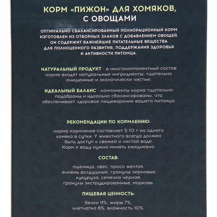 Можете просто насыпать его в кормушку, и ваш хомяк будет наслаждаться вкусной и полезной пищей. Он будет благодарен вам за такой вкусный и полезный корм!