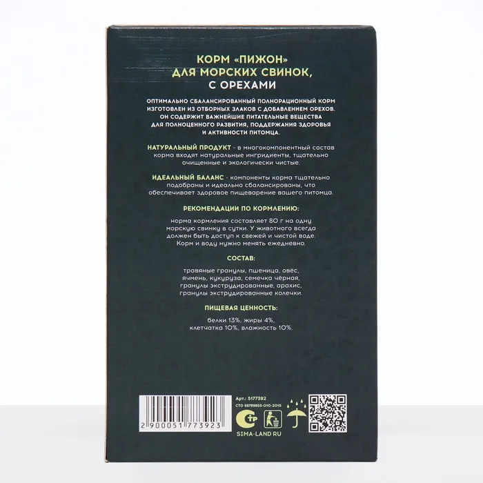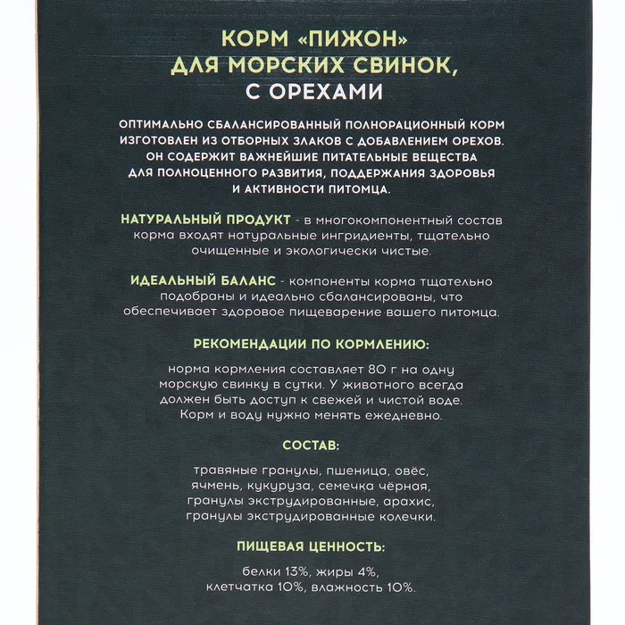 Корм «Пижон» для морских свинок, с орехами, 400 г — Характеристики