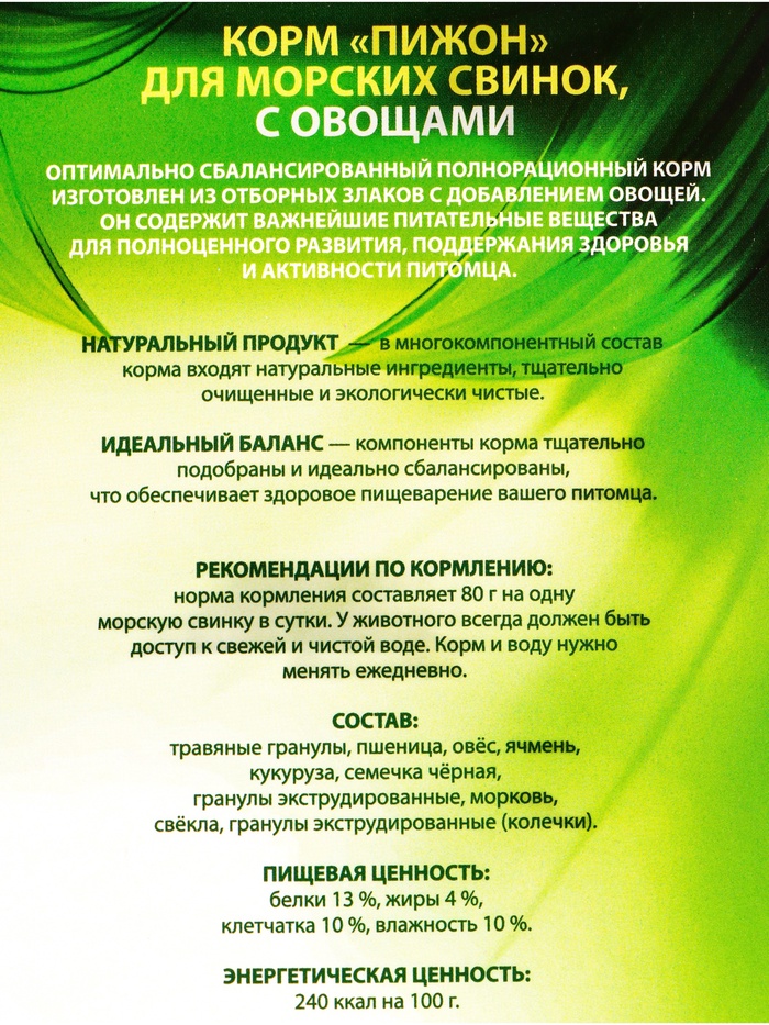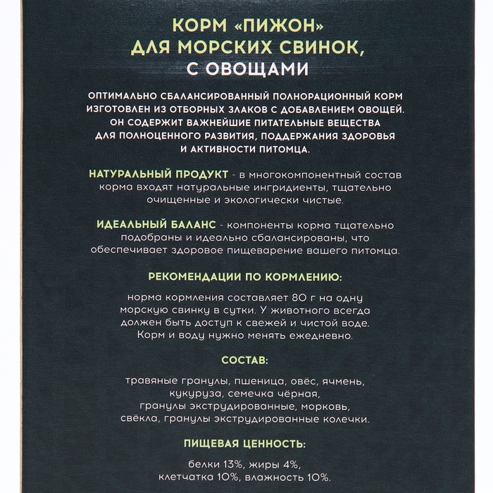 Корм «Пижон» для морских свинок, с овощами, 400 г — Характеристики