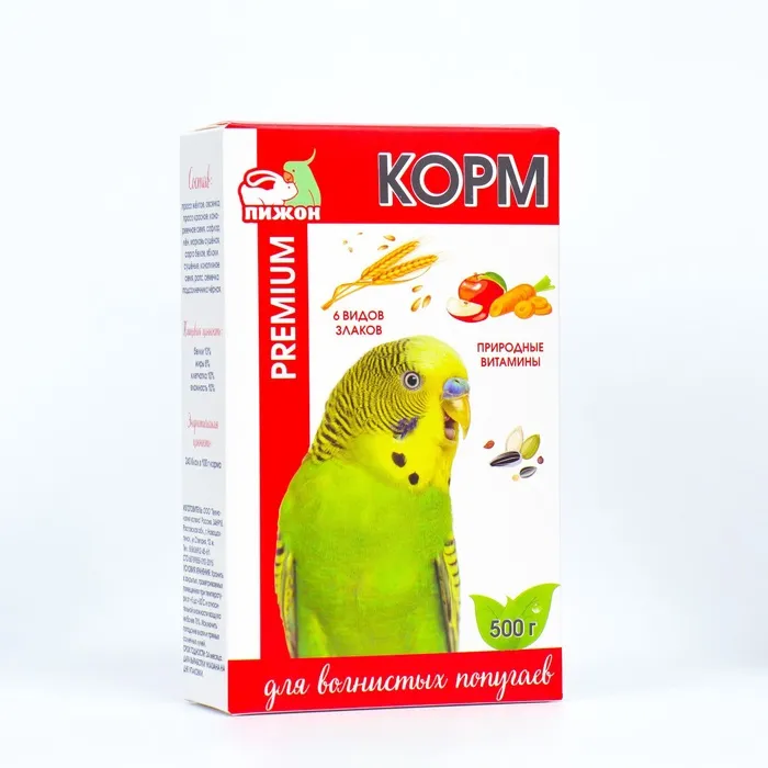 Натуральный комплексный корм, изготовленный в соответствии с пищевыми потребностями волнистых попугаев, живущих в домашних условиях.