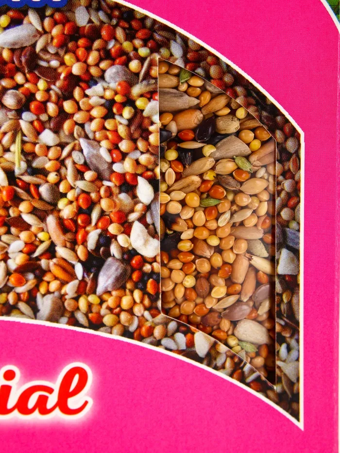Состав: просо жёлтое, просо красное, льняное семя, канареечное семя, конопляное семя, кунжут, овсянка, пшеница, подсолнечник (очищенный), суданка, орехи.
