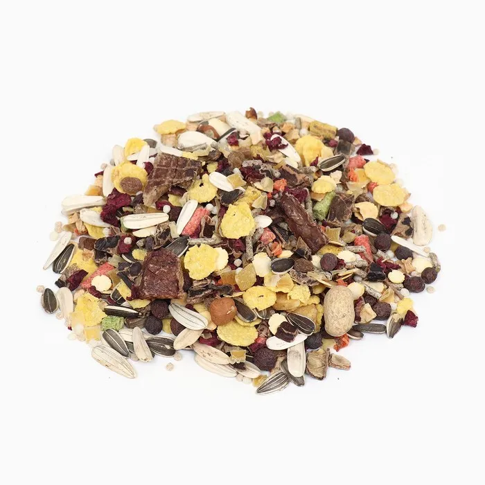 Фрукты и ягоды в составе способствуют нормальному пищеварению в период линьки и помогают выводить шерсть;