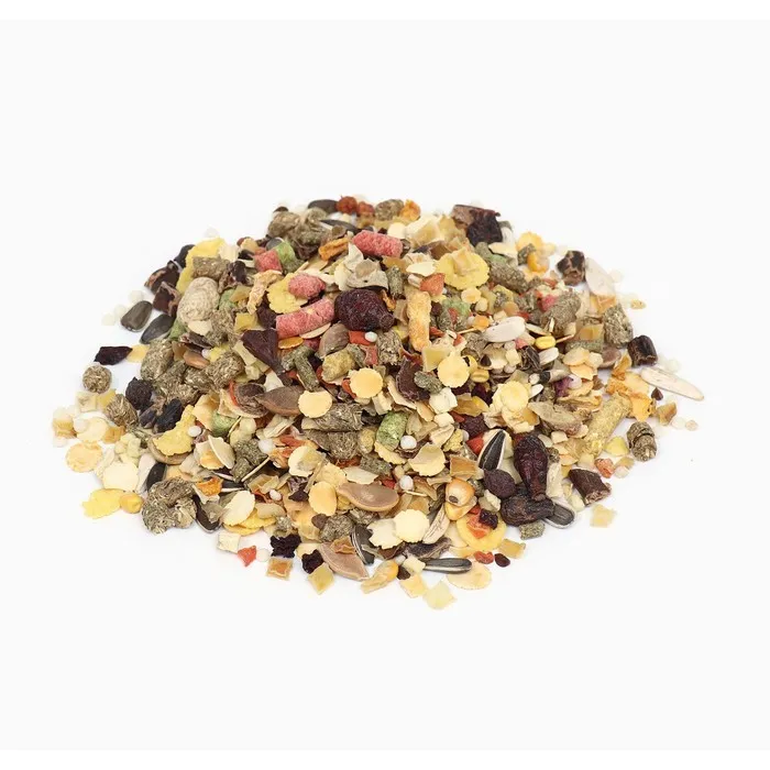 плоды рожкового дерева, кукурузная мука, пшеничная мука, гороховые хлопья, картофель, травяная гранула, кукуруза, семена тыквы, гречиха, морковь, плоды боярышника, воздушная пшеница, воздушный рис, семена подсолнечника, свекла, плоды шиповника, корень пастернака, арахис, рябина, семена тыквы, кукурузные хлопья, яблоко, лесной орех.