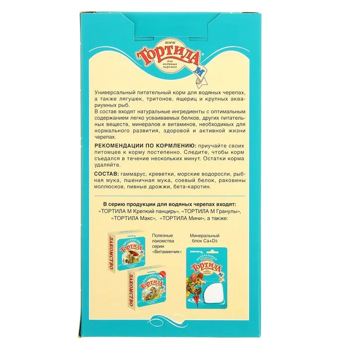 Корм "Тортила М" для водяных черепах, 50 г. — Характеристики