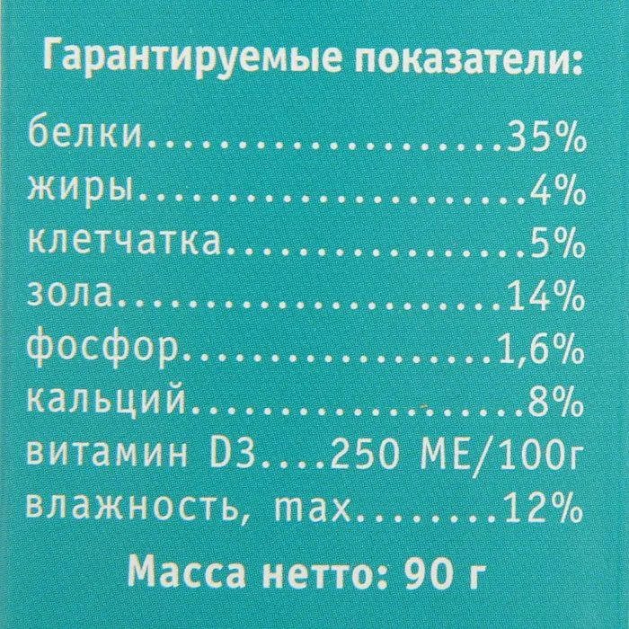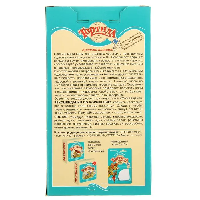 Корм "Тортила М Крепкий панцирь" для водяных черепах с кальцием, гранулы, 90 г. — Характеристики