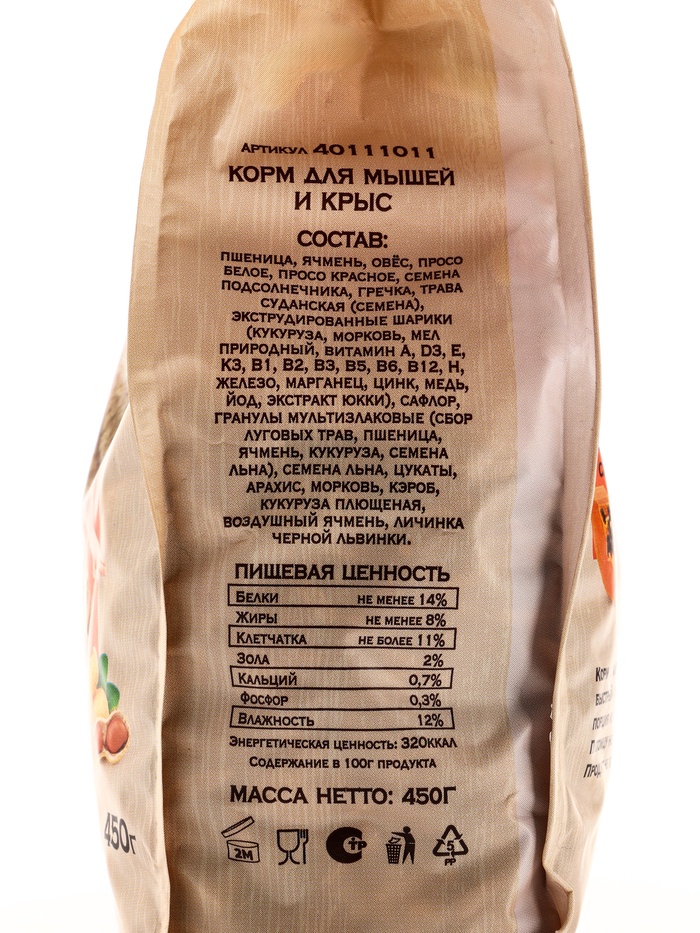 СОСТАВ: Пшеница, овес, ячмень, просо белое, просо красное, семена подсолнечника, травяные гранулы, горох, гречка, суданка, цукаты, морковь, кукуруза, воздушная кукуруза, арахис, шиповник, витаминный комплекс.