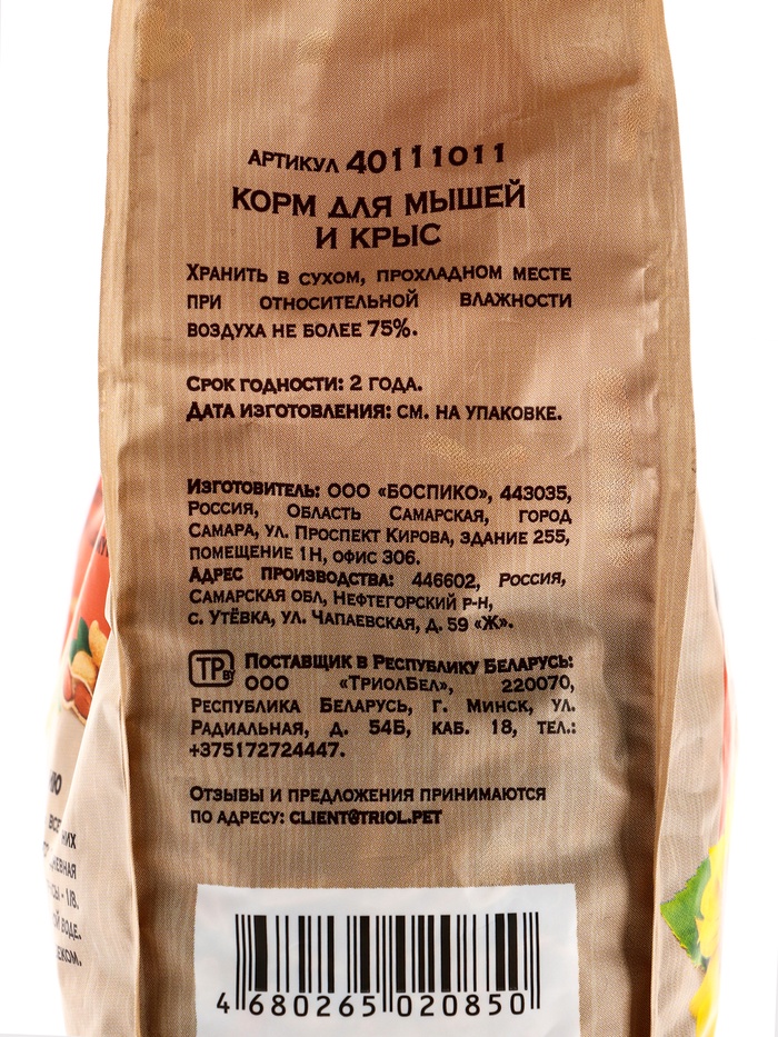 Содержит только натуральные ингредиенты и изготовлен из отборного зерна.