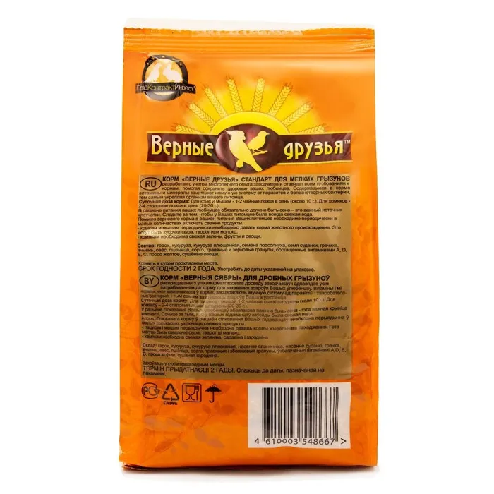 Корм "Верные друзья" для мелких грызунов - идеальный выбор заботливых хозяев! Он обеспечит вашего питомца всем необходимым для здорового питания.