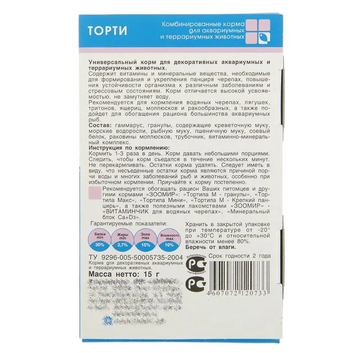 Корм ЗООМИР "Торти" для черепах, коробка, 15 г. — Характеристики