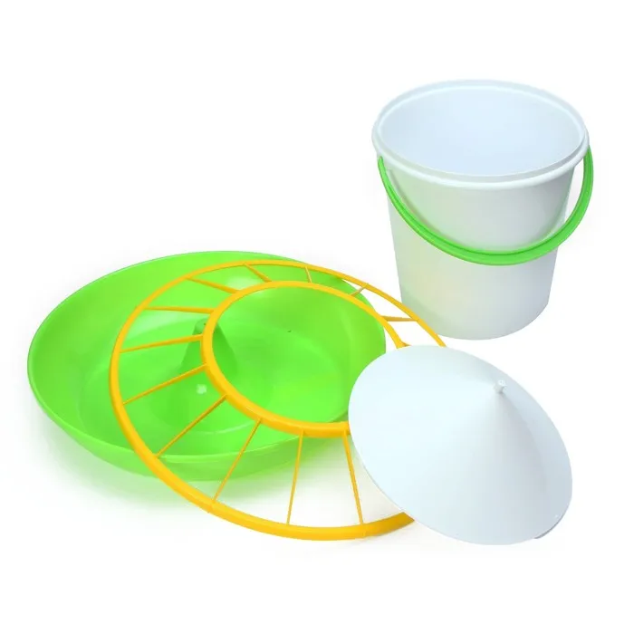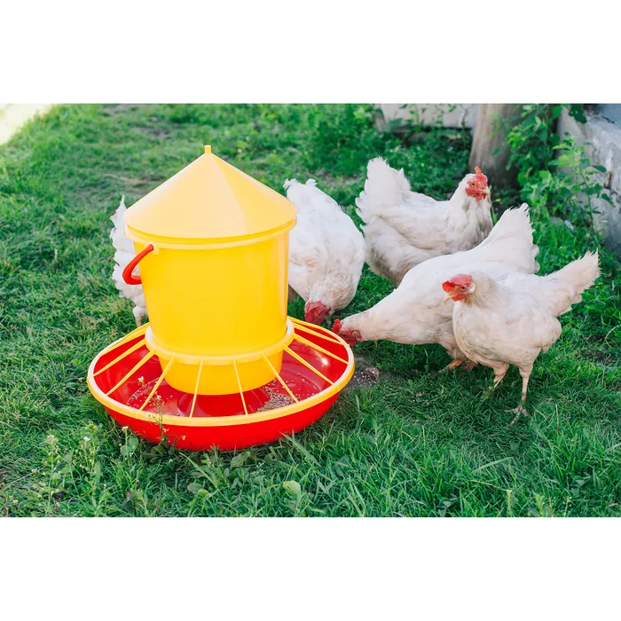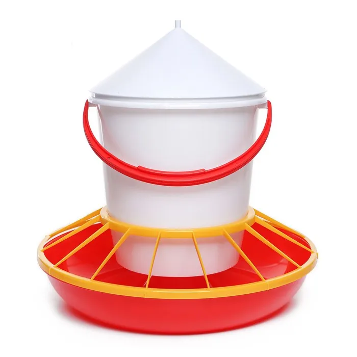 Бункерная кормушка пригодится для кормления птицы. Изделие представляет собой ёмкость и лоток для подачи корма.