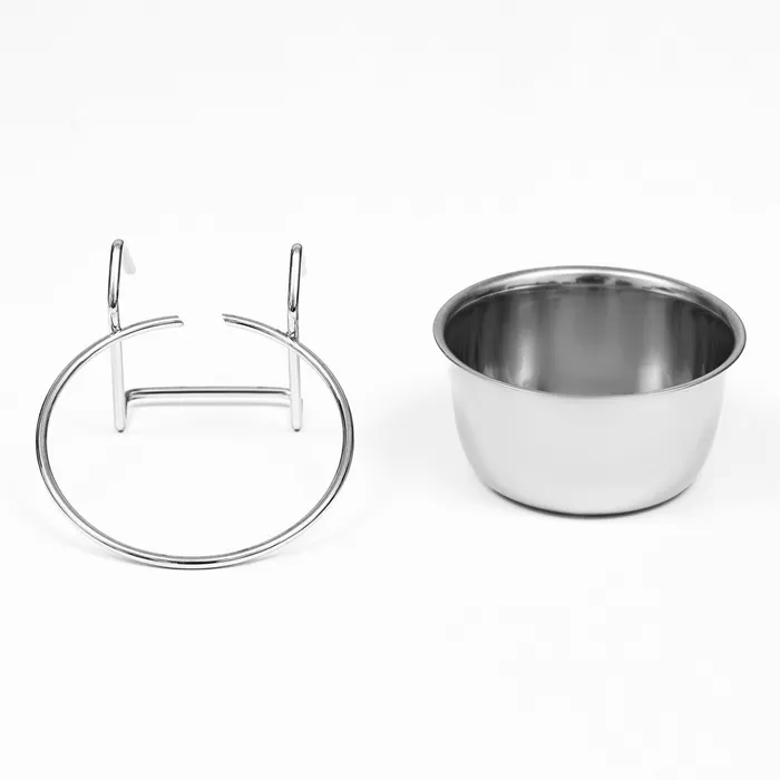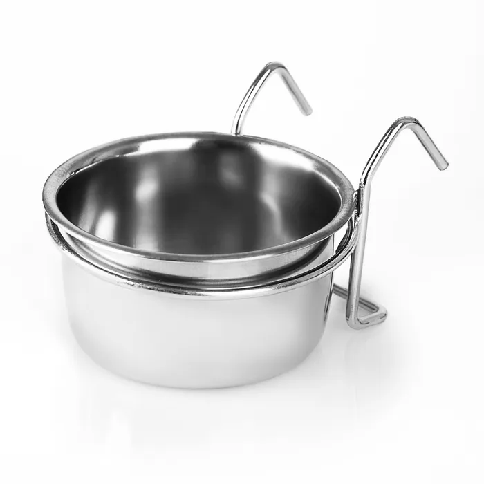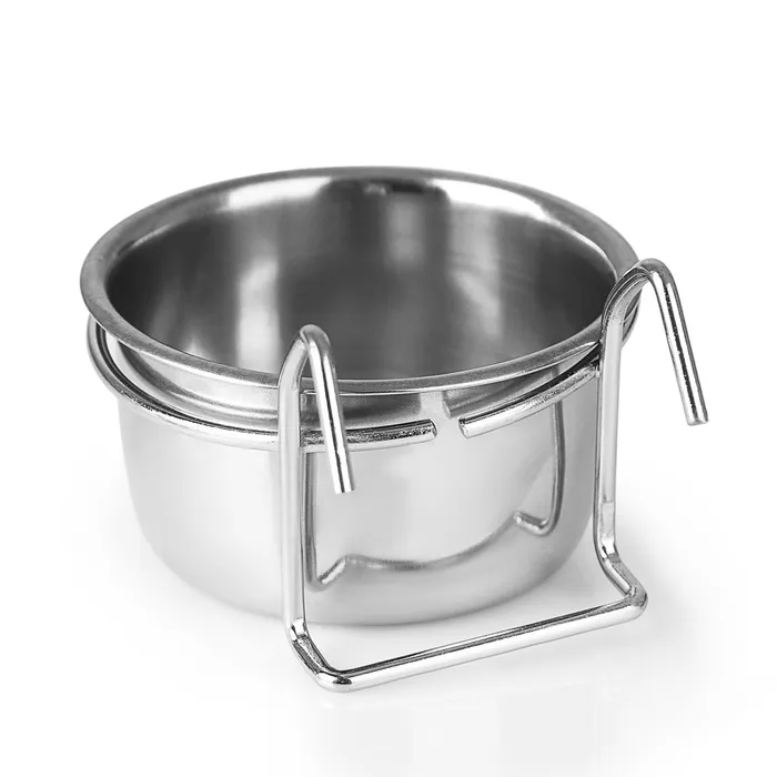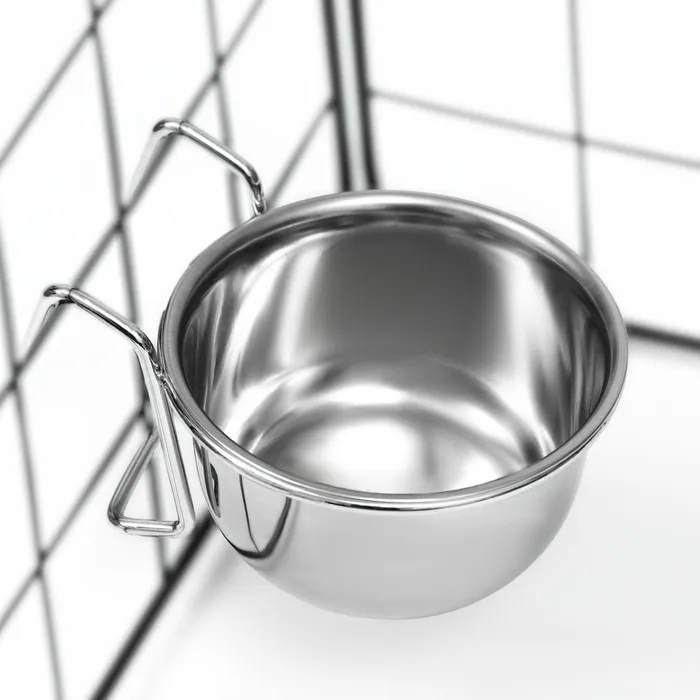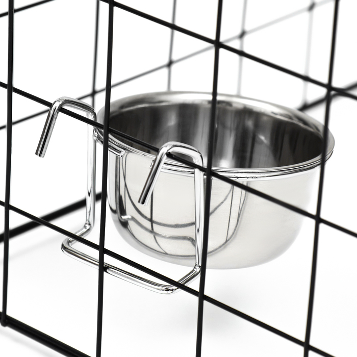 Миска крепится на клетку с помощью крючков под корм и воду для птиц и грызунов