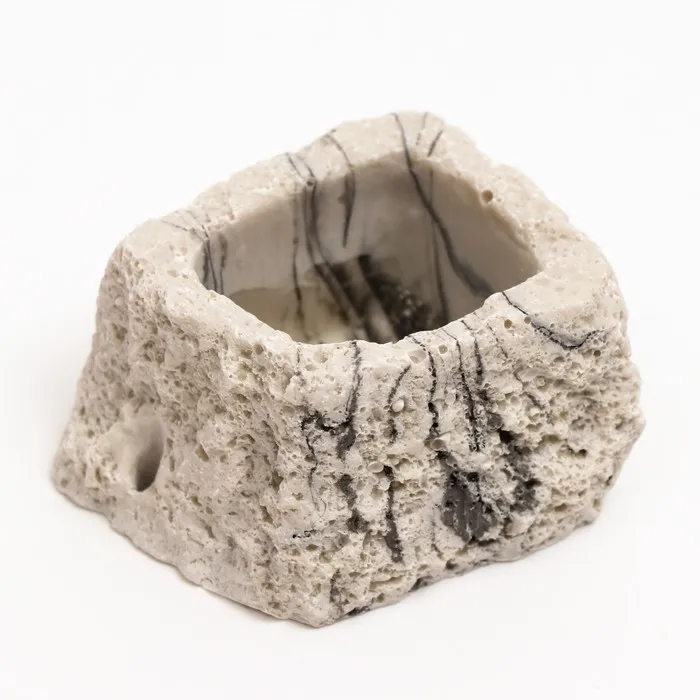 Основные преимущества: сделана кормушка из прочного камня; оригинальной формы уютно вписывается в интерьер террариума для улиток, черепах и других животных; комфортная и безопасная даже для мелких улиток. Комплект кормушек-поилок поможет обеспечить полноценный уход по питанию и наличию свежей воды. Накрошить мел кормовой, гаммарус, минеральную подкормку для улиток, положить корм для черепах или устроить ванночку для купания мелким животным теперь стало легко. Форма легко моется, может долгое время эксплуатироваться благодаря безопасному материалу. А моллюски почувствуют себя в родной стихии на листке огромного дерева.