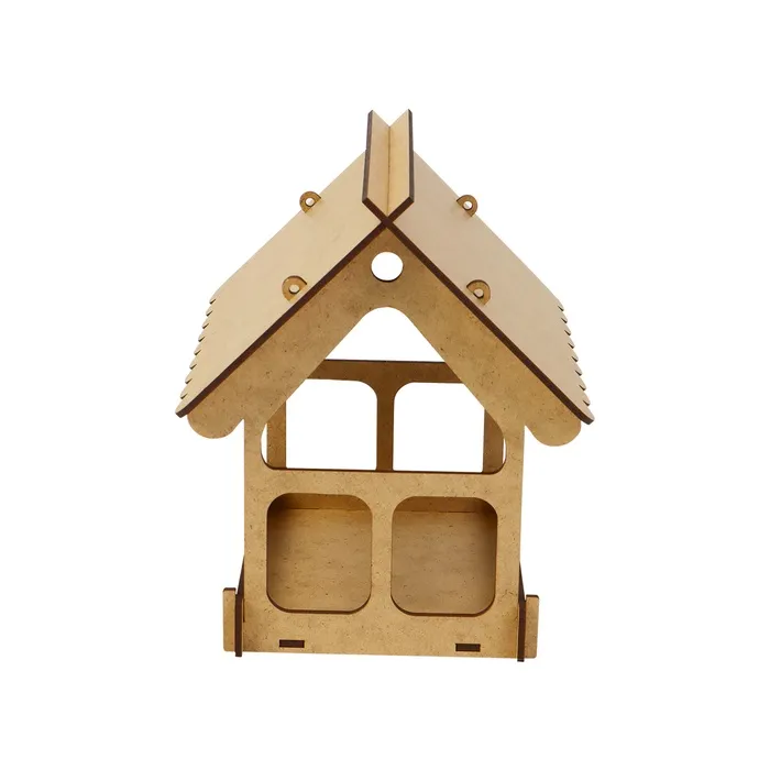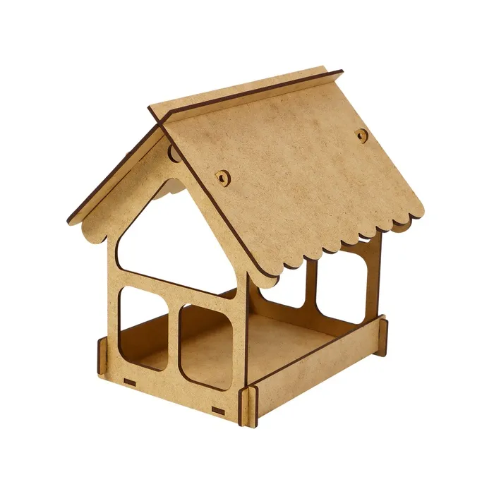 Чтобы собрать кормушку, аккуратно соедините фанерные детали, вставляя их в пазы. Используйте клей для лучшей фиксации. При желании модель можно раскрасить или задекорировать.