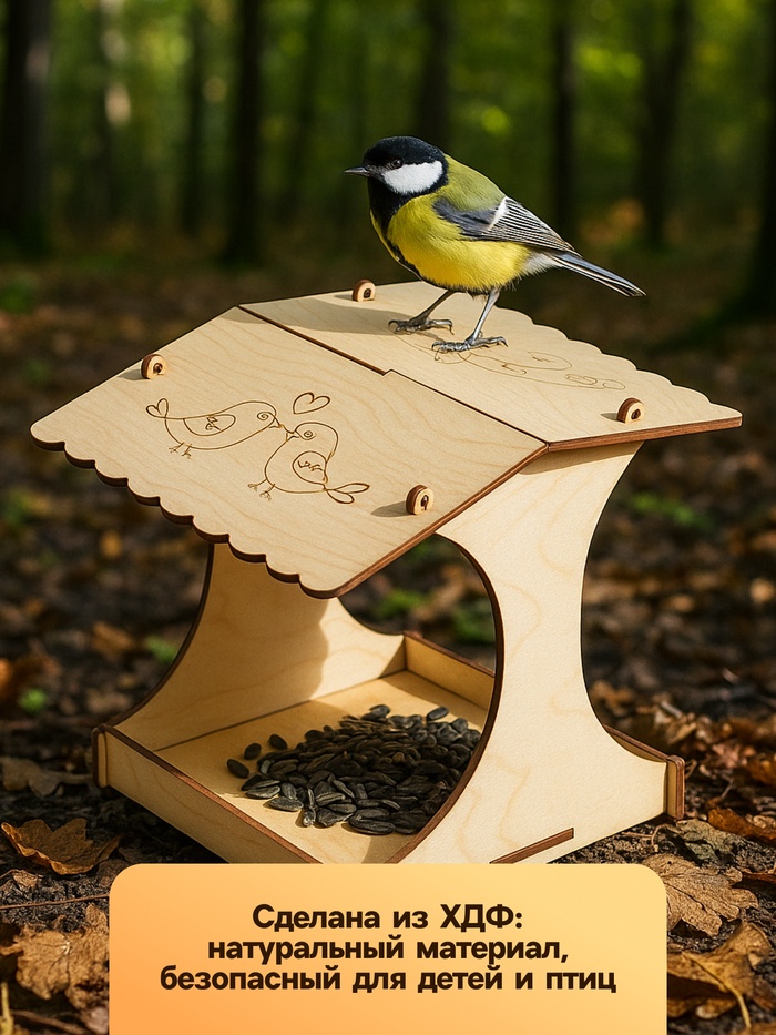 Польза и удовольствие: сборка кормушки — это отличный способ провести время с детьми, научив их заботиться о природе. Готовая кормушка помогает птицам пережить холодное время года, а вам дарит радость от общения с живой природой прямо за окном. Такой набор — не просто конструктор, а ценный вклад в экологию вашего двора и доброе семейное хобби.
