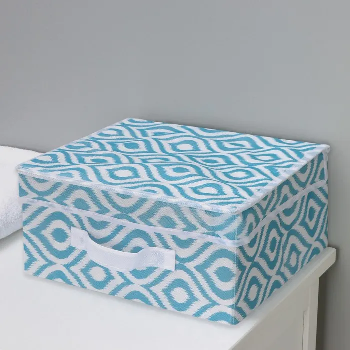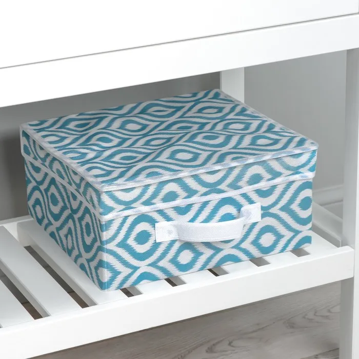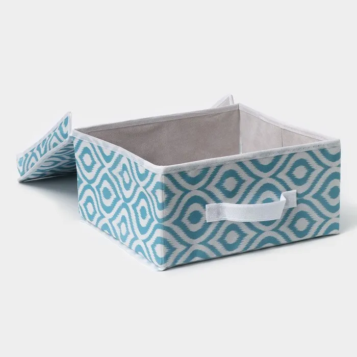 Изготовленный из прочного флизелина, короб в бирюзовом цвете с оригинальными узорами привносит свежесть и гармонию в любое пространство. Его аккуратная прямоугольная форма идеально подходит для хранения как одежды, так и различных материалов для рукоделия.