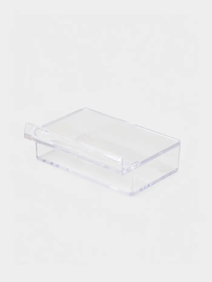 С размерами 10×7×3,5 см, он идеально подходит для хранения мелких предметов, таких как канцелярские принадлежности, украшения или косметику. Благодаря крышке, ваши вещи будут защищены от пыли и потерь, а прозрачный материал позволит быстро находить нужное без лишних усилий.