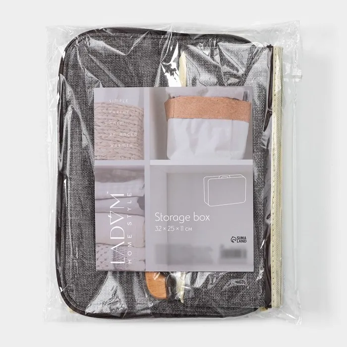 Короб для хранения на молнии LaDо́m «Рон», 32×25×11 см, серый — Характеристики