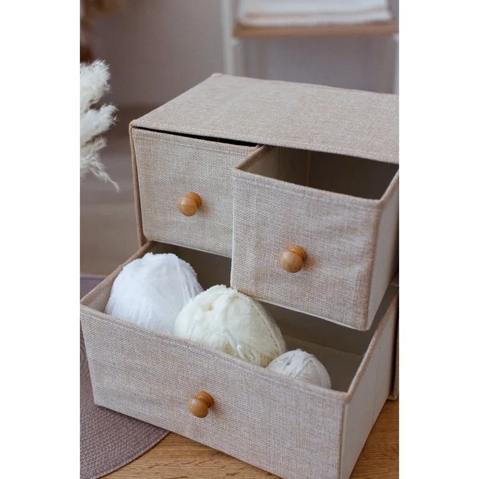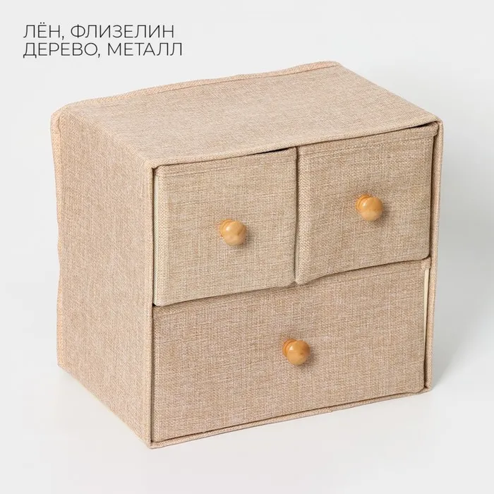 Короб для мелочей LaDо́m «Франческа», 3 выдвижных ящика, 30×20×28 см, бежевый — Характеристики