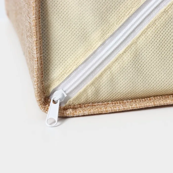 - Прямоугольный короб с легкостью поместятся на полке в многоярусном шкафу, секционном шкафчике и даже прикроватной тумбочке.