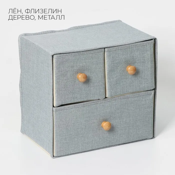 Короб для мелочей LaDо́m «Франческа», 3 выдвижных ящика, 30×20×28 см, серо-голубой — Характеристики
